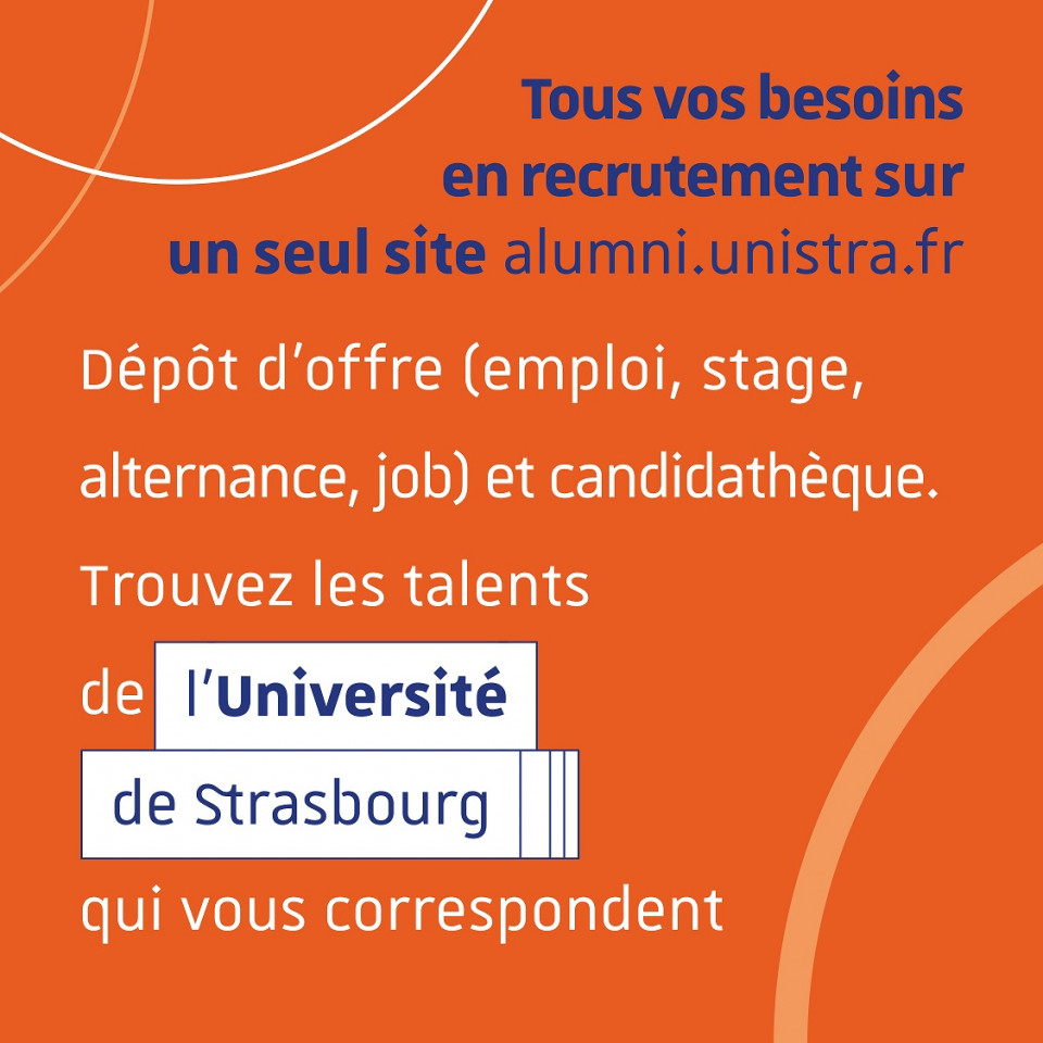 Vous êtes étudiant.e, jeune diplômé.e ou professionnel.le en quête de talents ? Découvrez alumni.unistra.fr, la plateforme unique qui centralise désormais toutes les offres d’emploi, de stage, d’alternance et de job de l’Université de Strasbourg. Que vous cherchiez à recruter ou à postuler, tout est désormais accessible en un clic, avec une équipe dédiée pour garantir la qualité et la diversité des opportunités.